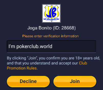 Download the poker app PokerBros, register an account, and request access to Joga Bonito by clicking the Get Deal button.