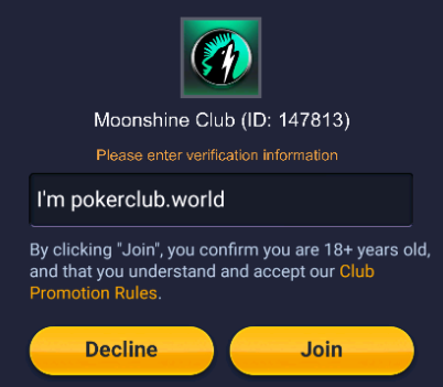 Download the poker app PokerBros, register an account, and request access to Moonshine by clicking the Get Deal button.