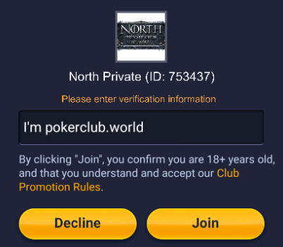 Download the poker app PokerBros, register an account, and request access to North Private by clicking the Get Deal button.
