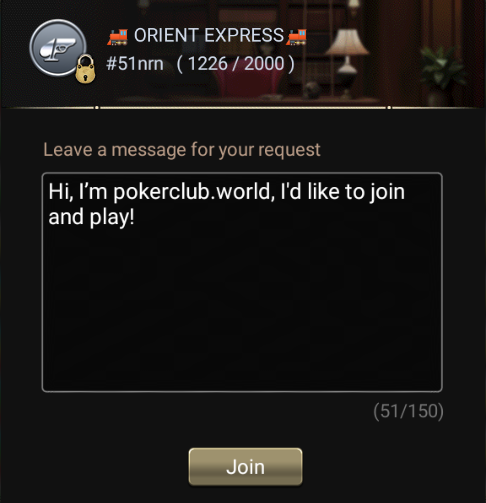 Download the poker app Pokerrrr 2, register an account, and request access to ORIENT EXPRESS by clicking the Get Deal button.