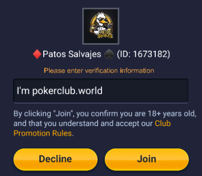 Download the poker app PokerBros, register an account, and request access to Patos Salvajes by clicking the Get Deal button.