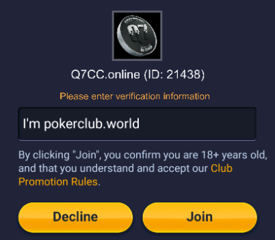 Download the poker app PokerBros, register an account, and request access to Q7CC online by clicking the Get Deal button.