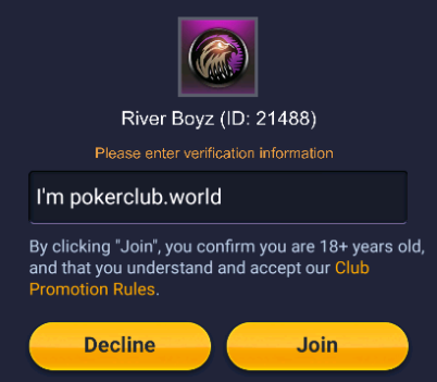 Download the poker app PokerBros, register an account, and request access to River Boyz by clicking the Get Deal button.