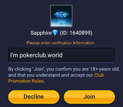 Download the poker app PokerBros, register an account, and request access to Sapphire by clicking the Get Deal button.
