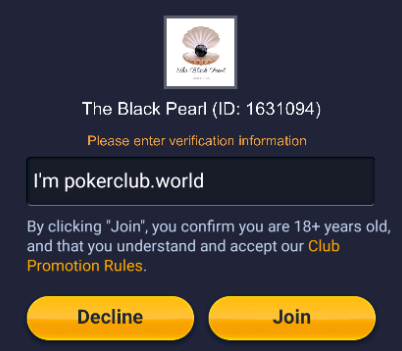 Download the poker app PokerBros, register an account, and request access to The Black Pearl by clicking the Get Deal button.