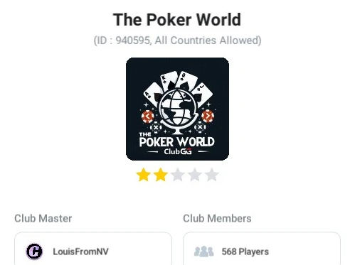 Download the poker app Club GG, register an account, and request access to The Poker World Club by clicking the Get Deal button.