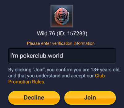 Download the poker app PokerBros, register an account, and request access to Wild 76 by clicking the Get Deal button.