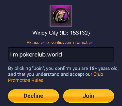 Download the poker app PokerBros, register an account, and request access to Windy City by clicking the Get Deal button.