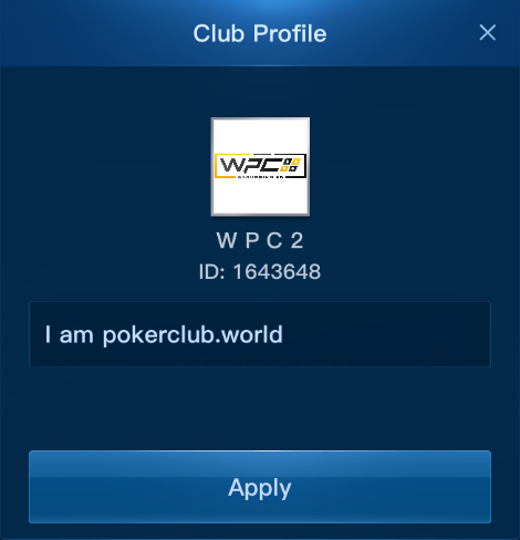 Download the poker app X Poker, register an account, and request access to WPC 2 by clicking the Get Deal button.